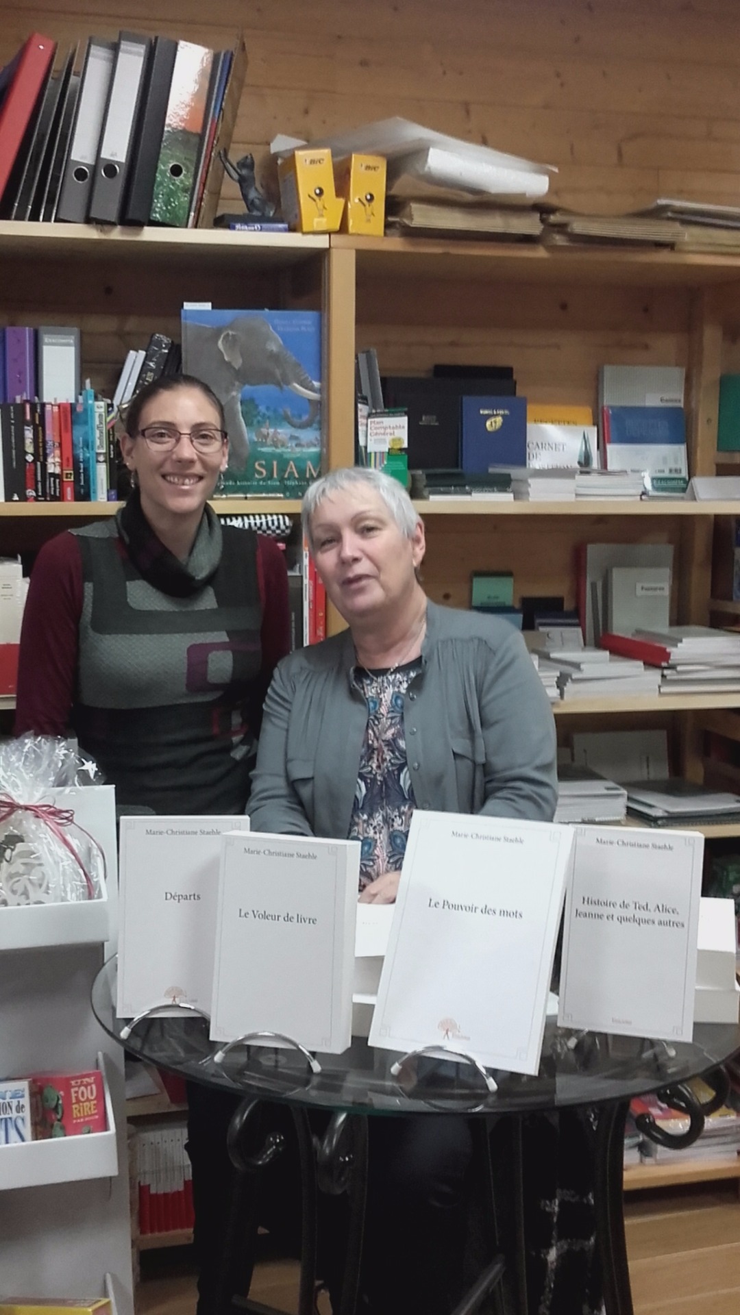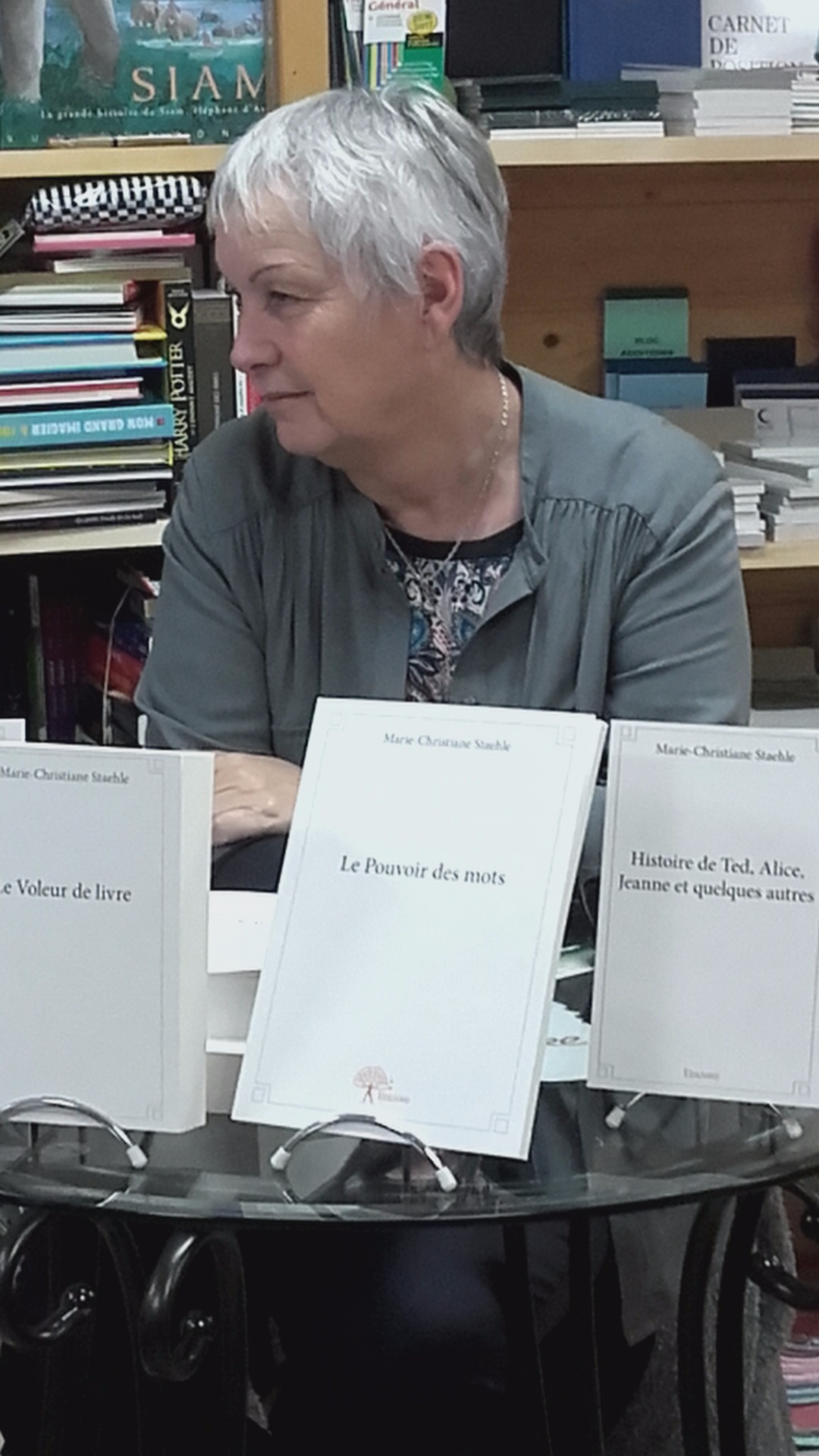 Journée magique avant Noel pendant laquelle Marie-Christiane Staehle a su captiver l'attention des lecteurs en recherche d'ouvrages. De part son charme, son sourire, un rire communicatif plein de gaieté et avec en plus une oreille attentionnée La Troubadouresse nous a séduit.